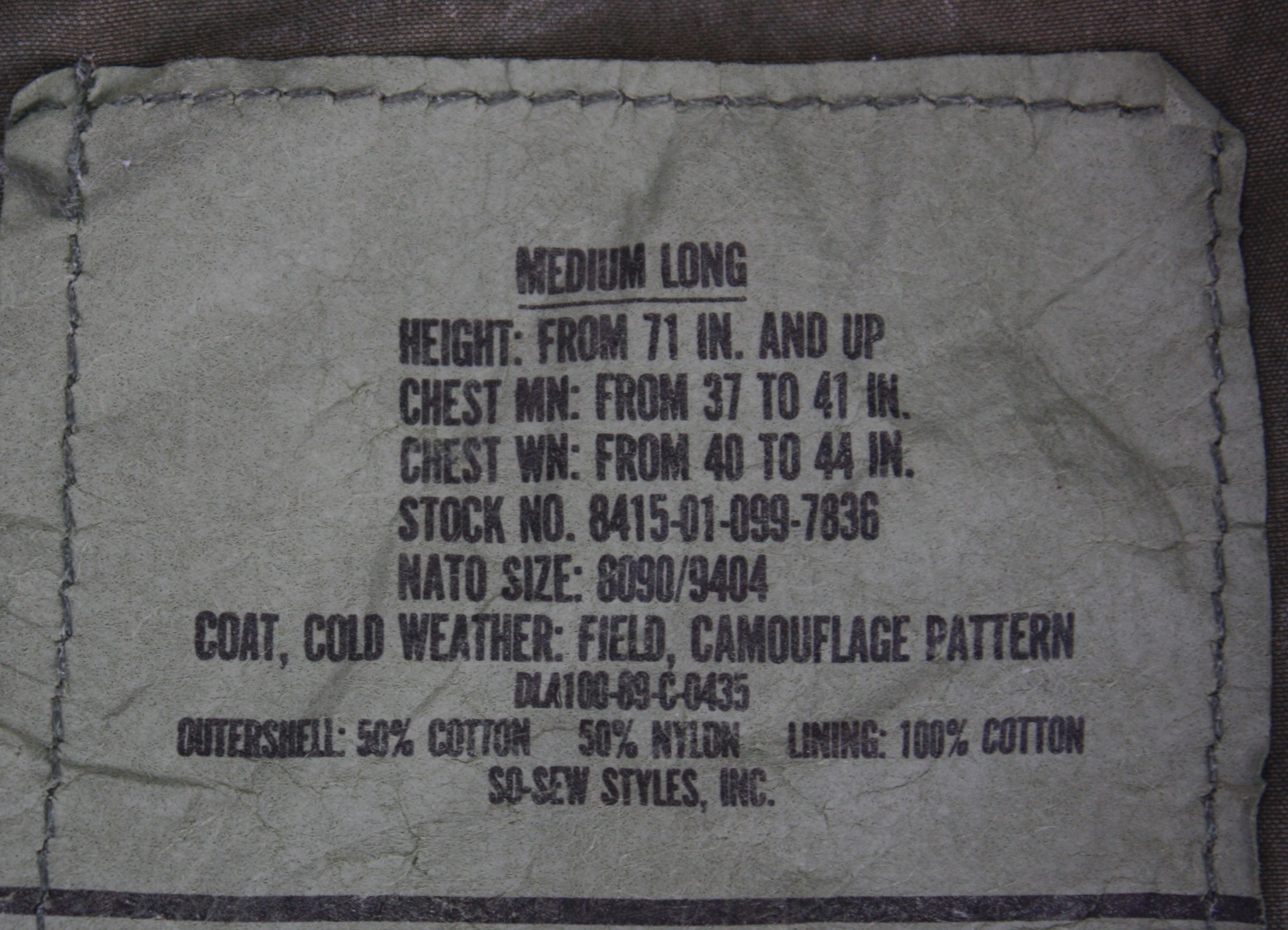 เสื้อทหารสหรัฐ M65 รหัสประเทศผู้ผลิต 01